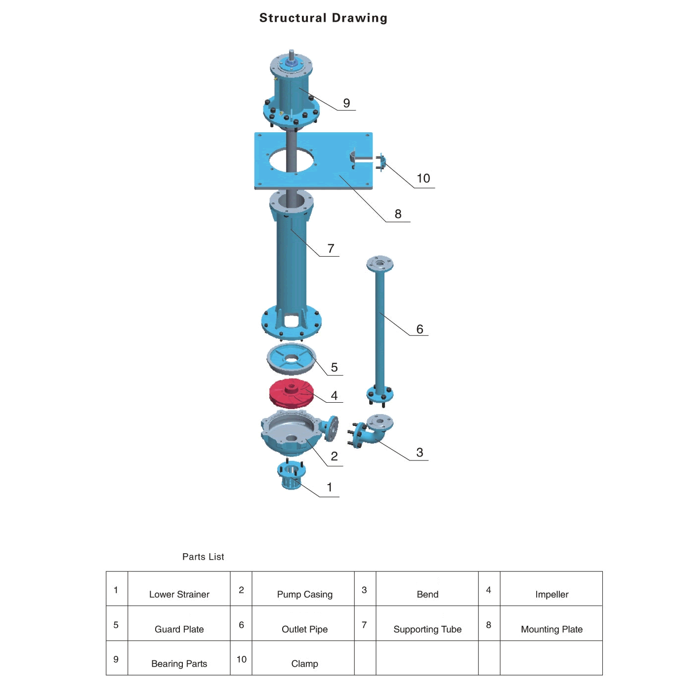 ☆ RV-SP型立式渗滤液渣浆泵产品结构